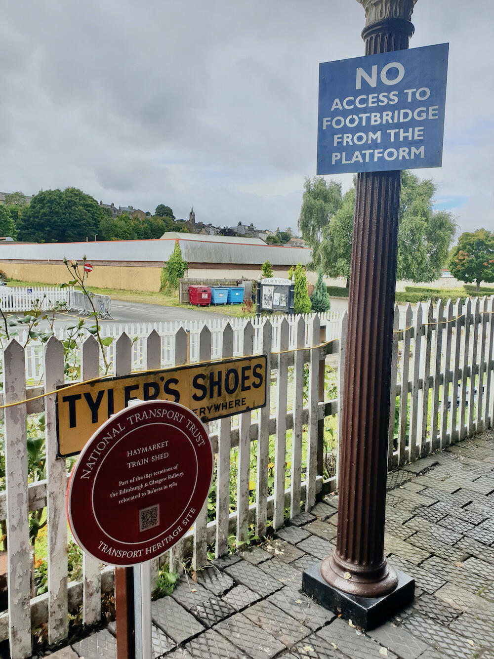The buildings in the station area were brought to Bo'ness in 1984, saving each of them from permanent demolition elsewhere. Of these, the trainshed is the most important historically. It was originally built at Edinburgh Haymarket station by John Miller, Engineer, and was the initial Edinburgh terminus of the Edinburgh and Glasgow Railway, which opened in February 1842. At Haymarket, two similar trainshed bays stood side by side and abutted the two-storey station offices building which still stands today. Haymarket remained a terminus only until 1846, when the railway was extended partly in tunnel and partly in cutting through Princes Street Gardens to Waverley station. The extension passed by the Haymarket trainshed on its southern side. When traffic through Haymarket increased after the opening of the Forth Bridge, the tracks into Waverley were quadrupled. To make space for these tracks, the southern bay of the original trainshed was demolished. The northern bay remained standing, latterly providing no more than car parking space, until plans for alterations to the station in the 1980s required its removal. As the building was listed, it was carefully removed for re-erection at Bo'ness. This work was managed by Sir Robert McAlpine & Sons.