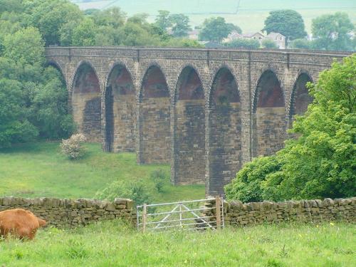 By road: Can be viewed from B6144 south east of Cullingworth. It is on the Great Northern Railway Trail.
