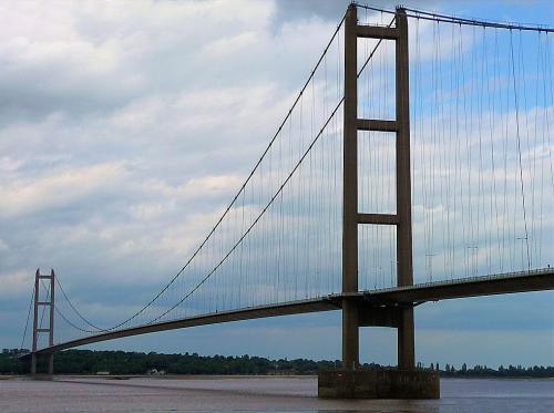 The Humber Bridge, near Kingston upon Hull, England, is a 2,220 m (7,283 ft) single-span suspension bridge, which opened to traffic on 24 June 1981. When constructed, it was the largest of its type in the world. It spans the Humber, the estuary formed by the rivers Trent and Ouse, between Barton-upon-Humber on the south bank and Hessle on the north bank. For many years the Humber Estuary was a regional barrier to trade and development.