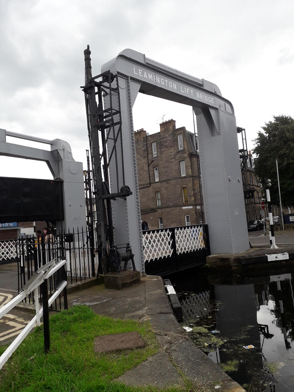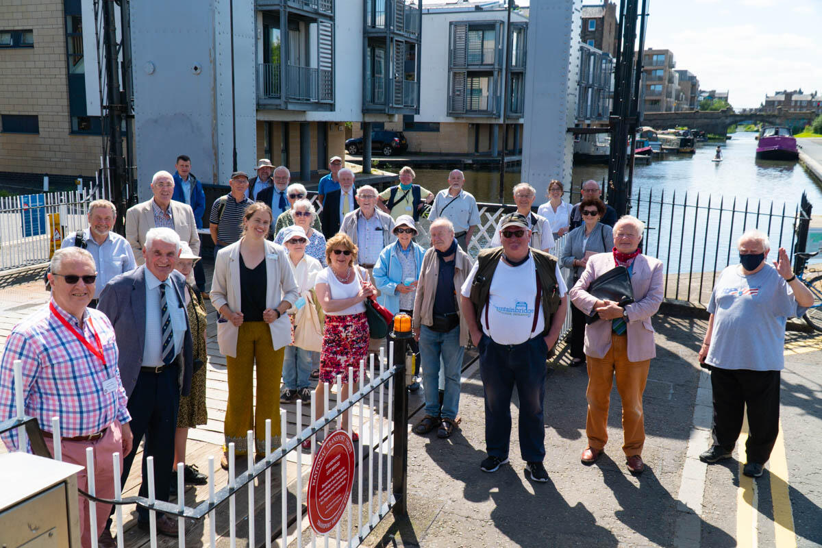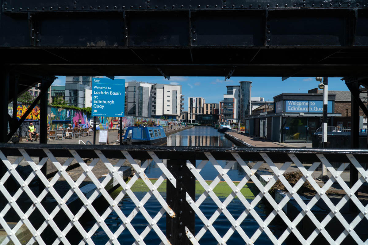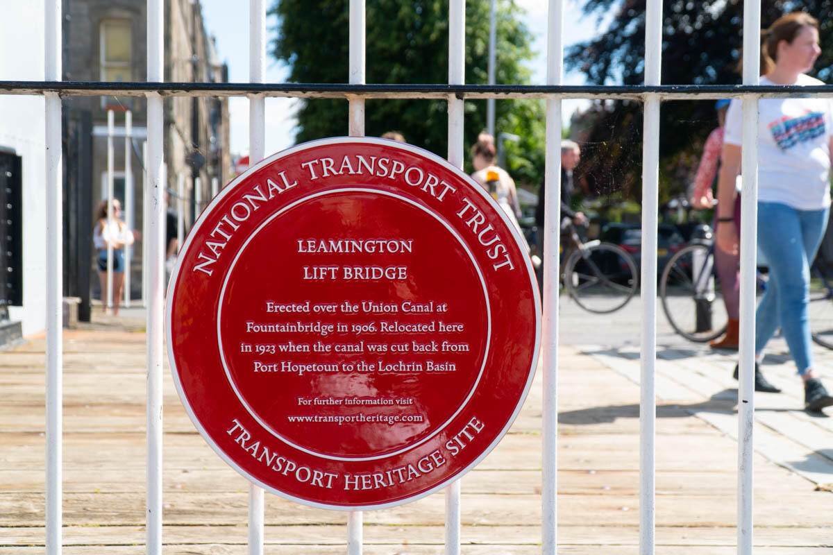 The only hydraulic structure on the Union Canal, installed by the North British Railway around 1906 where Fountainbridge crossed the canal, replacing a previous bridge built in 1869.When the canal was shortened in 1922 to make Lochrin Basin the terminus it was moved to its present site to replace a wooden drawbridge. It fell out of use by the 1960s, but as part of the Millennium Link project to restore the Union Canal required to be restored at least to allow boats to pass. A report published in the year 2000 had suggested fixing it permanently open, but the decision was taken to restore it to full working order. The restoration involved removing the deck and the top member of the bridge to access the inner workings. It opened for the first time on 16 May 2002, followed by an official opening ceremony on 24 May. Further restoration was required in 2018/9.