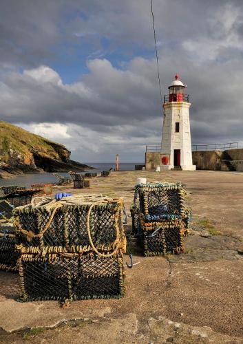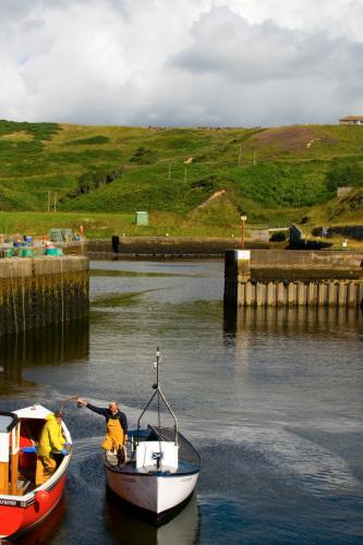 The inner harbour was completed as recently as 1950. The harbour is still used mainly for fishing, but the number of working boats is down to twenty or so. Leisure craft now fill the inner harbour. There is still a lot of evidence of fishing in terms of the boats moored in the harbour and the lobster pots and other fishing gear piled around it. It is a really superb working harbour in a stunning setting between encircling headlands.