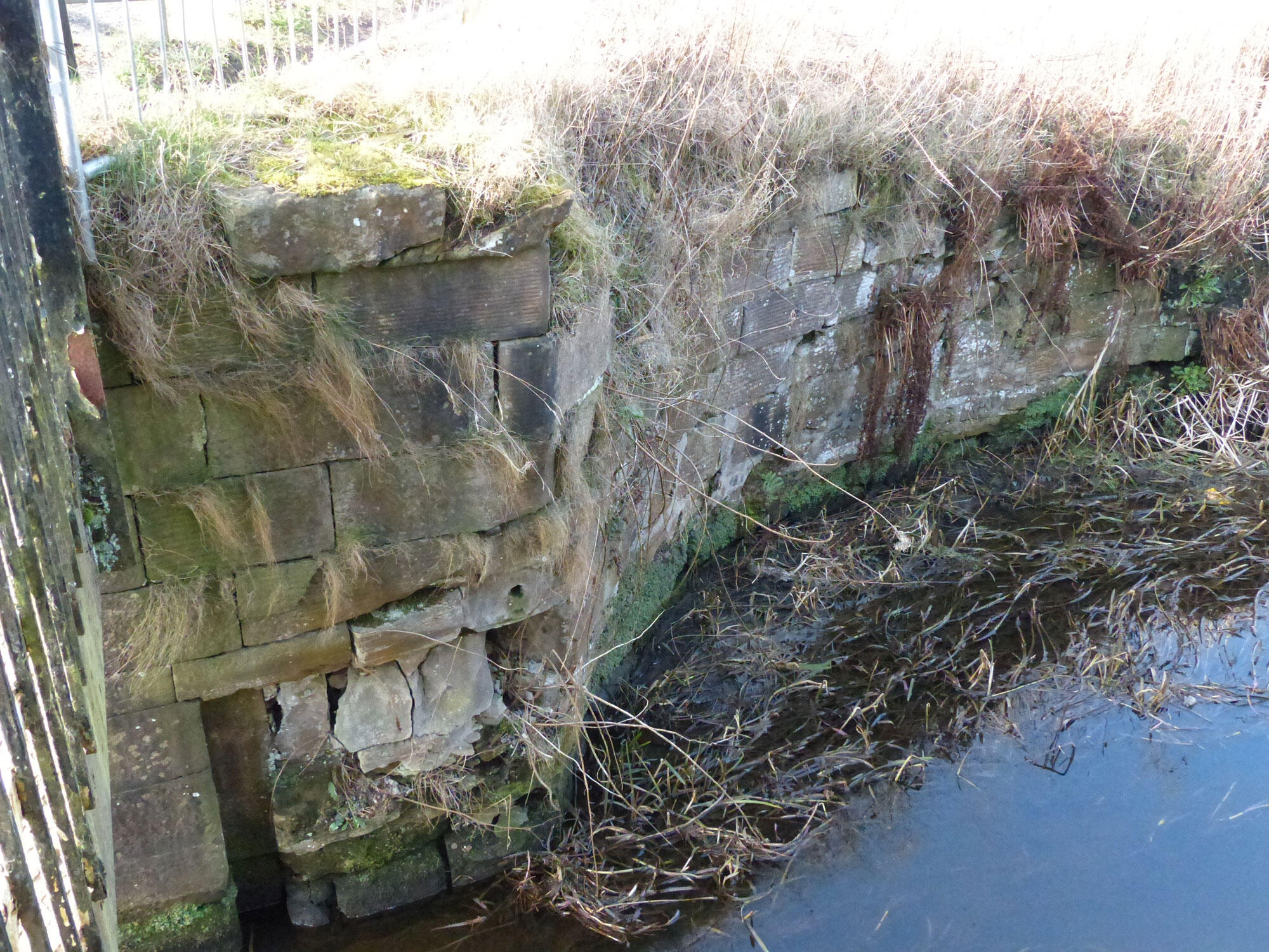 Maggie's Bridge began about 1794 as a waggonway bridge carrying a horse-hauled line from a coalpit on the Woodhall estate over a viaduct across the North Calder Water (piers are largely intact) and via an embankment to a wharf on the canal's north side for transit by 'scow', again horse-hauled, to Glasgow.