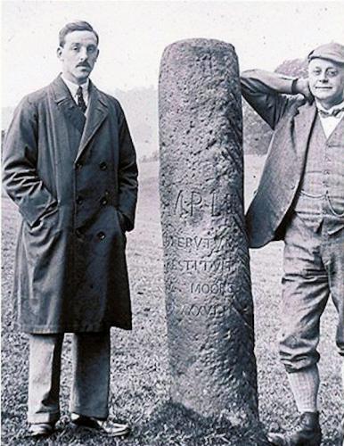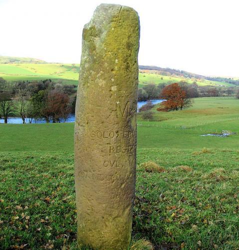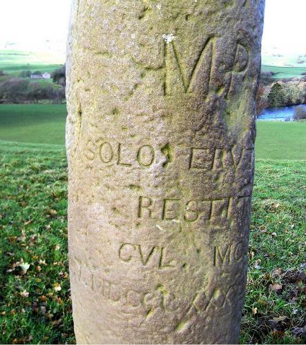 It is a cylindrical sandstone shaft dating back to c. 300 AD. It stands 1.7 m out of the ground, with a diameter of 0.5 m. It bears the letters 'M (ilia) P(assuum) L lll' i.e. 53 miles, perhaps from Carlisle. Below it is an inscription added on the instructlon of Giles Moore of Grimeshill "SOLO ERVTVM RESTVTIT GVL MOORE AN MDCCCXXXVI" meaning "restorcd from the soil by Giles Moore 1836".