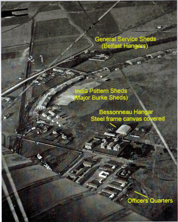 Dating from 1913, the three hangars which are known as 'Major Burke's sheds', were the first to be built as part of Montrose Air Station. They are among the earliest surviving examples of first-generation aircraft hangars in the United Kingdom. Other early examples of aircraft hangars that pre-date the First World War do survive in England but Montrose is the only example in Scotland.