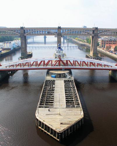The Swing Bridge was built by the Tyne Improvement Commission, under powers conferred by the Tyne Improvement Act of 1861, as part of their overall plan for improving navigation and expanding trade by opening the upper reaches of the river to larger vessels. The bridge was designed and constructed by Sir W.G. Armstrong and Company Ltd of Elswick, the work being begun in the year 1873. It was first used for road traffic on the 15th June 1876 and opened for river traffic on the 17th July 1876.