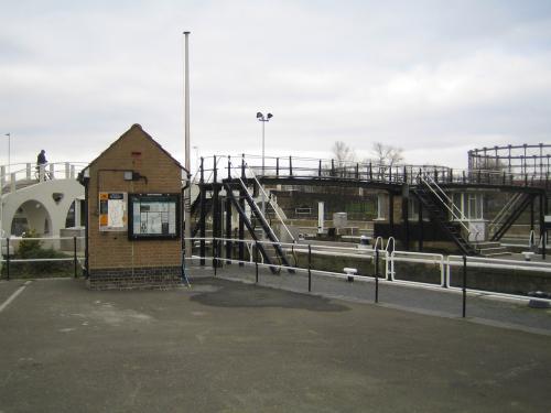 A series of locks designed to allow water to flow in either direction.