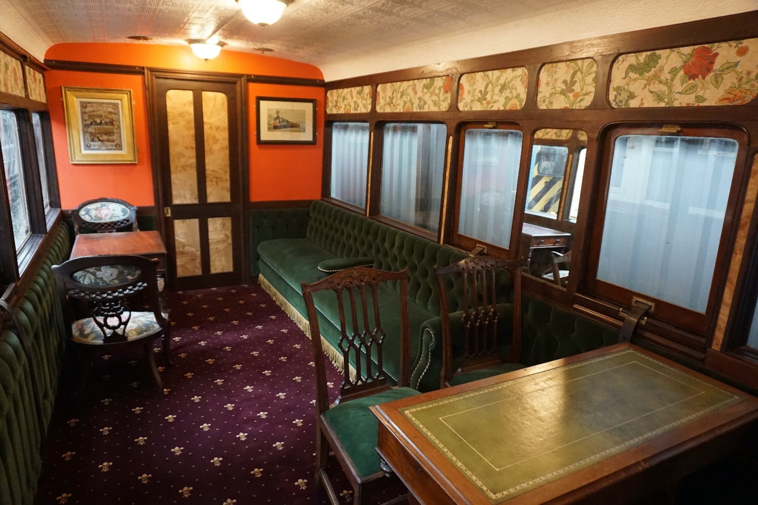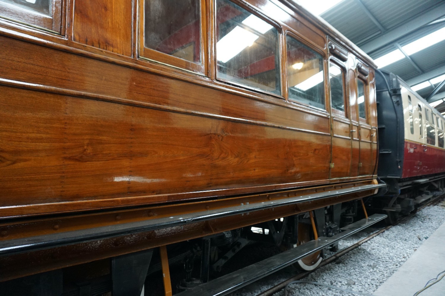 Owned and restored by Stephen Middleton, of Harrogate, this project has involved the painstaking restoration of a teak, six wheel carriage converted for the use of the Prince of Wales and having several unique features. The carriage was converted from a private saloon for use by Edward, Prince of Wales, in 1881, reverting to a private saloon in 1892. The coach is one of the few remaining royals, with most other royal vehicles, outside the current royal train, having either been converted back to passenger stock, departmental use or static exhibits, many in the National Railway Museum or its Shildon outpost. The amount of work on this restoration thus far has been considerable, and it has been executed by Stephen, his family, and a small team, to very high quality. All the fittings are period, and these, together with the finishes, are either original or a close replica. The ceiling in the end compartment is a replica of the painted linen original, copied in meticulous detail. That said, the work continues, as the furniture goes in, There are brakes, a heating system and new wheel bearings to fit, a kitchen and heating to install as well as more varnish, gold leaf and crests to apply. This is a high quality restoration of an unusual vehicle. Visitors will be able to travel on it, enjoy fine food and really feel as the Prince of Wales must have done. Although Stephen’s team is small, they crack on and achieve magnificent standards. They thoroughly deserve this restoration award.