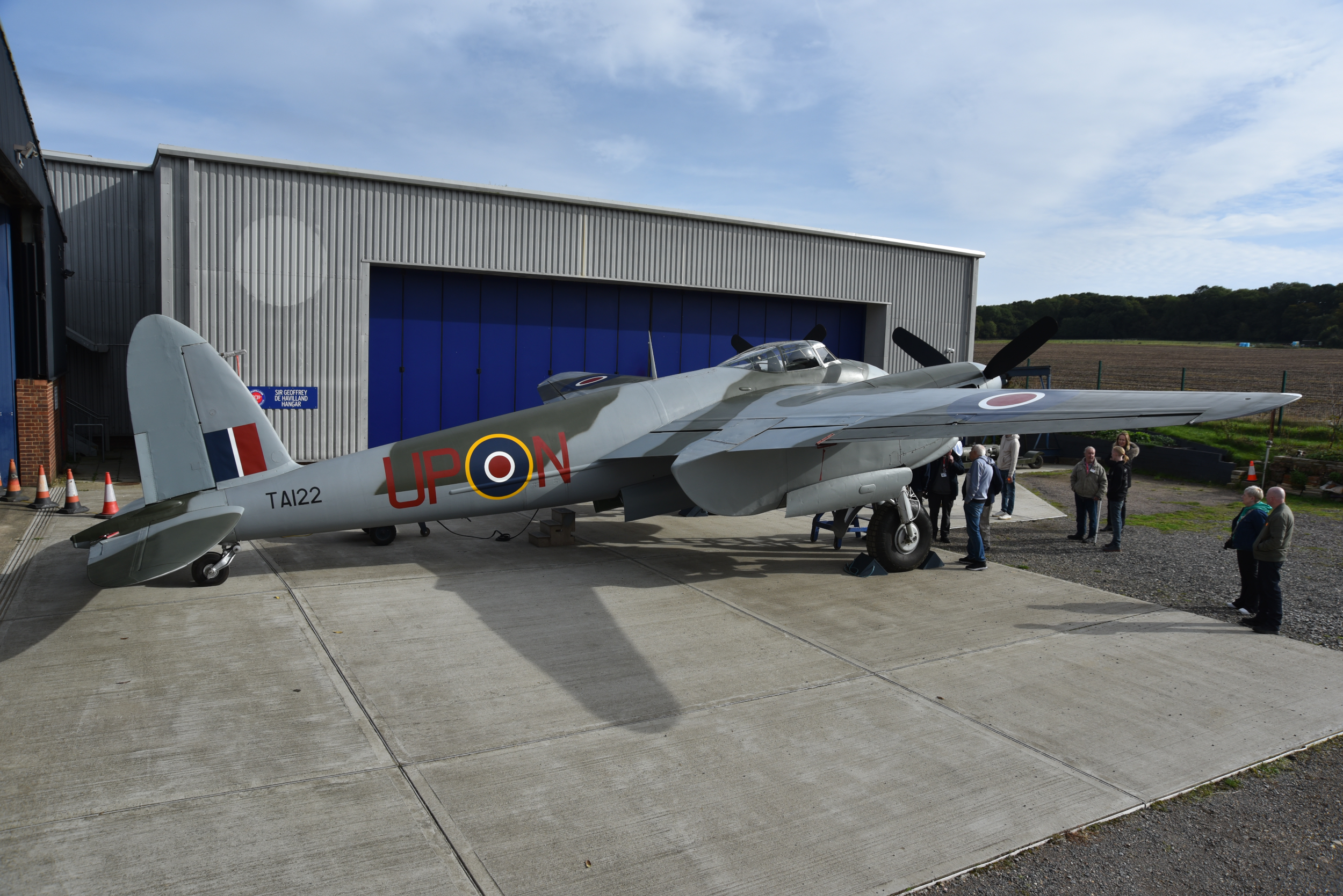 Around this time the de Havilland Museum was beginning to expand and was looking for a fighter-bomber to fill a gap in its collection. TA122 was prised out of its Dutch storage and brought to Salisbury Hall, albeit anything but complete. A wing was sourced from Israel, with radiators and undercarriage and this assembly was flown to Heathrow courtesy of El Al. Other components came from Canada, Australia, New Zealand. Work on the wing began in 1985, led by Colin Ewer who had worked on the de Havilland production line in 1946. It took 15 years.