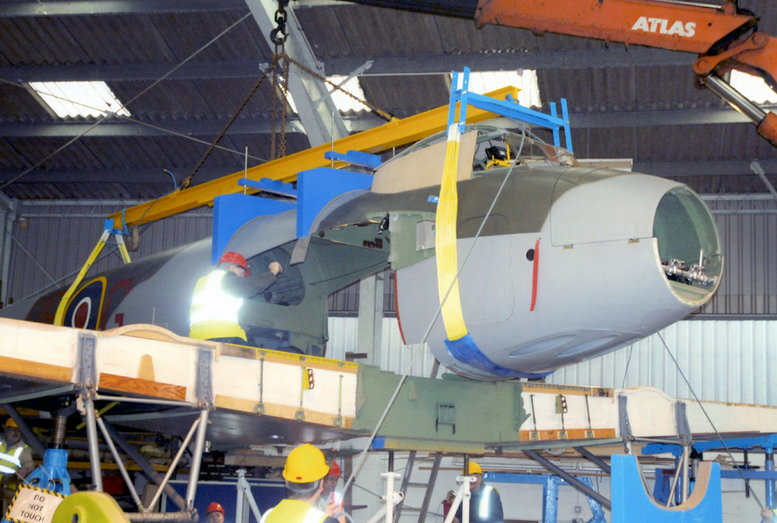 The wing and fuselage were re-united in March 2009. Engine and propellers were fitted in 2014. Although she is a static exhibit, all electrical systems are in working order following a complete rewiring.